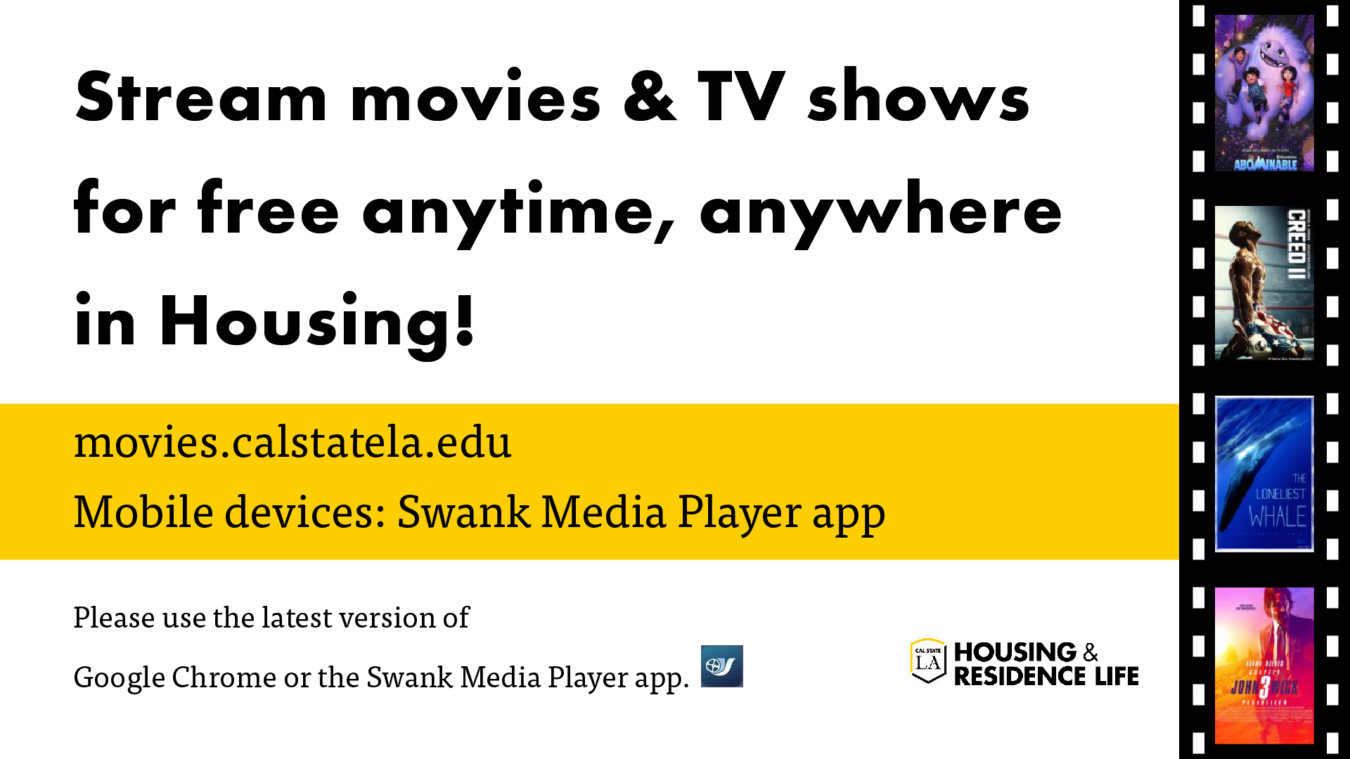 Cal State La Housing On Twitter Free Streaming On Swank No Login Or Account Required Just Visit Https T Co Yjmdx8gxxo While On The Csula Secure Wifi And Enjoy Calstatela Calstatelahousing Csulahousing Https T Co Zaekonngqg Twitter